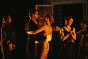 Comme dans Shakespeare qu’il aimait par dessus tout, Tchekhov orchestre les timbres, les rythmes, les tempi, temps blancs et galops. Les gestes, les objets, les sons, les mouvements, les situations, les voix se croisent, s’entrecroisent, se chevauchent parfois, s’interrompent brusquement, suggèrent à peine avant de s’évanouir. Mosaïque, dramaturgie en éclats, en figures chorégraphiques sans cesse recomposées, décentrées, dans le tissu serré du dialogue et des silences, dans le mouvement même de la vie. Le génie de Tchekhov, c’est que le drame est aussi une comédie.