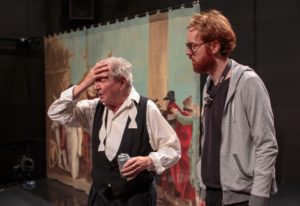La comédie de Tchekhov se joue comme à notre insu, se déclinant en de joyeuses variations et digressions quand les protagonistes s’abandonnent aux confidences et revisitent d’autres textes ou chansons. La scène elle-même semble se prêter au jeu des mirages, par le dialogue des ombres, des lumières, des sons, de ces fantômes qui l’habitent et des accidents incongrus qui peuvent s’y produire. Un spectacle festif, entre dérapages et télescopages s’amusant des codes et paradoxes du théâtre et de la folie douce d’artistes rêvant de suspendre le temps. Sur scène, c’est la rencontre malicieuse de deux générations de comédiens: le jeune et déjà très remarqué Adrien Gygax et Roger Jendly, figure mythique du théâtre suisse, auréolé de l’Anneau Hans Reinhart.